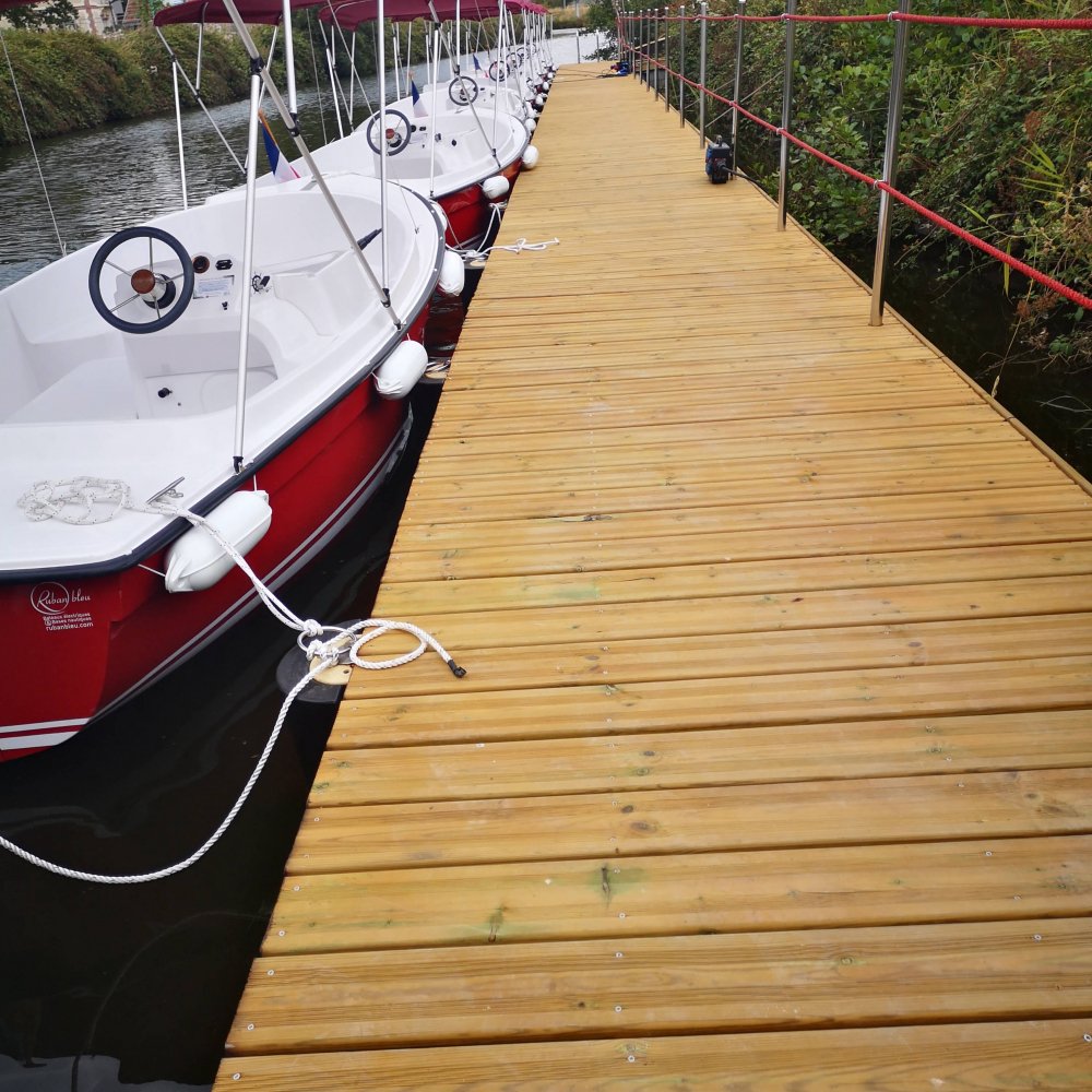 Vous pouvez toujours garnir votre solution flottante de multiples accessoires : garde-corps, anneaux d'amarrage, défenses, échelle de bain... tous les éléments peuvent être intégrés à la structure bois !